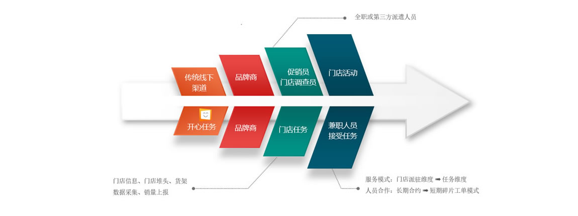 | 零售終端促銷員日常表現(xiàn)評估、銷量上報、貨架缺貨管理、促銷員出勤管理,后臺基本數(shù)據(jù)維護、生意分析決策 | |